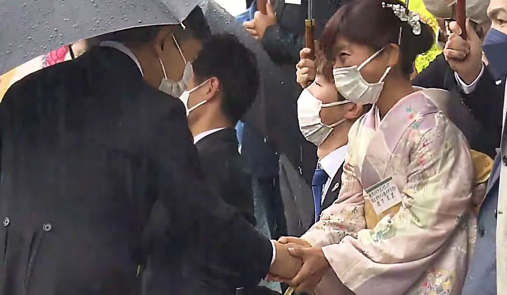 Uno de los momentos emotivos de la fiesta fue cuando el emperador Naruhito no hizo el tradicional saludo de reverencia, sino extendió la mano a Misato Michishita, ganadora de la medalla de oro de la maratón femenina para deportistas con discapacidad visual en los Juegos Paralímpicos de Tokio 2020.