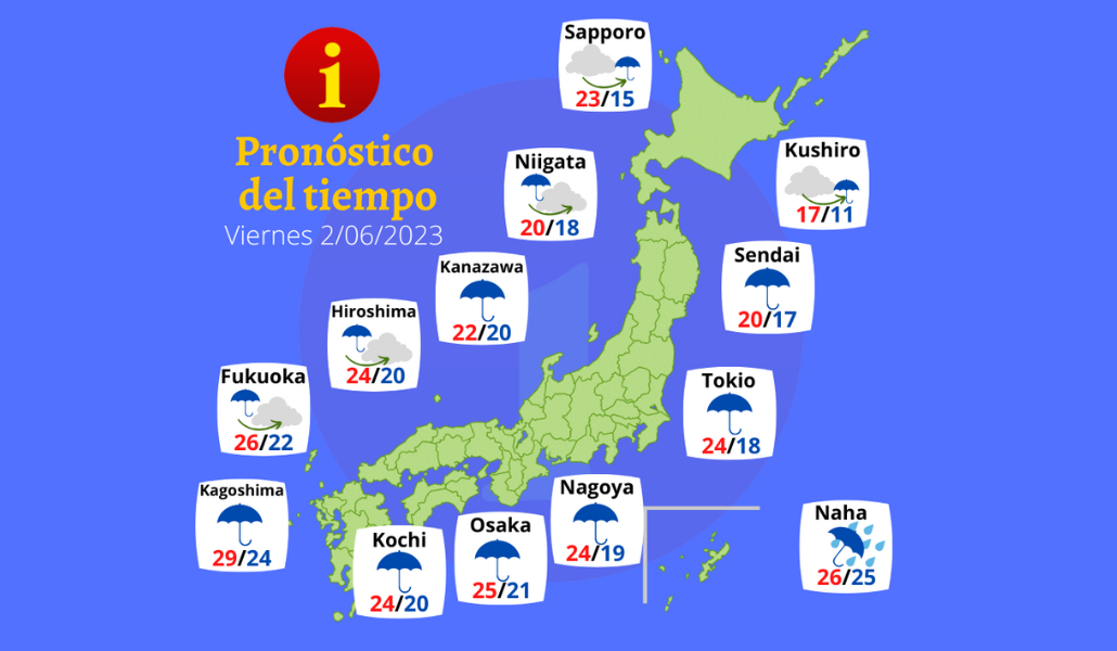 Para este viernes 2, existe el riesgo de fuertes lluvias de nivel de desastre en una amplia área desde Kyushu hasta Kanto-Koshin. Además, hay la posibilidad de que ocurra un «cinturón de lluvia lineal» donde el riesgo de inundaciones aumentará considerablemente. Se pide evitar las salidas innecesarias durante las horas pico de las fuertes lluvias y estar preparados para evacuar.