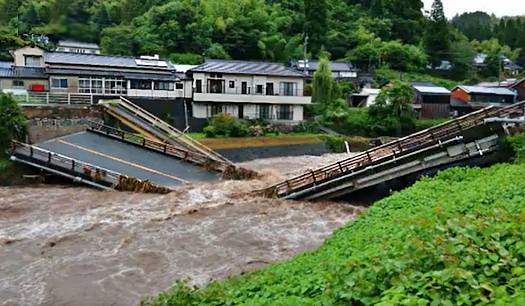 Se emitieron órdenes de evacuación en la ciudad de Kumamoto y otras zonas, mientras que la crecida de los ríos provocó el derrumbe de un puente en la carreteras nacional de dicha prefectura.