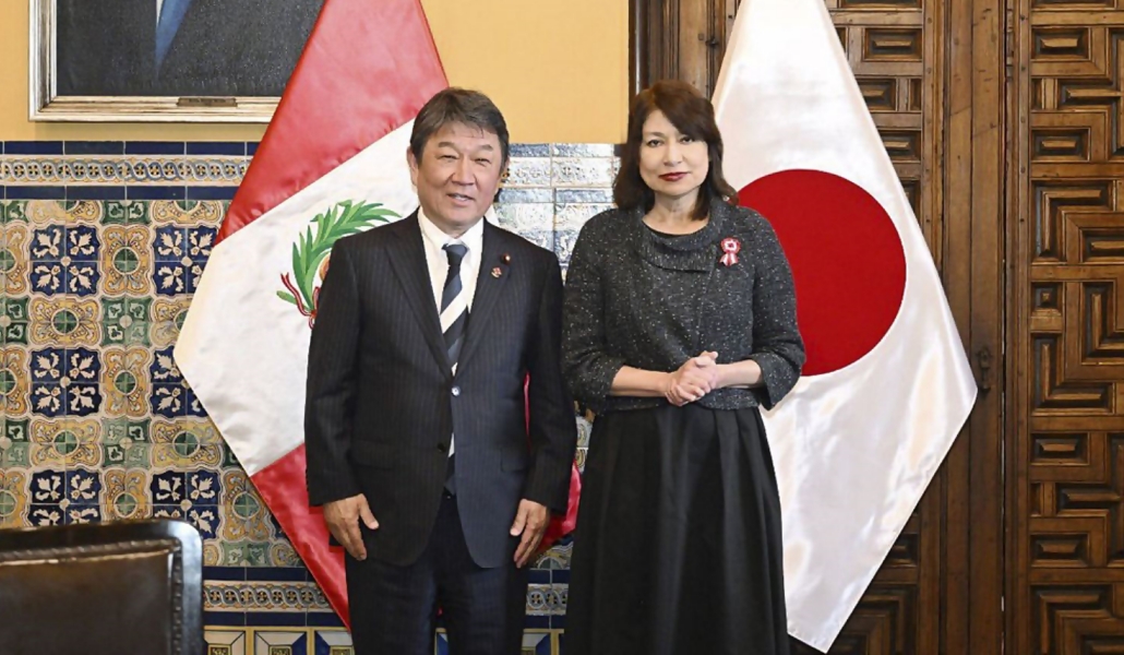 En Lima, Motegi se reunió en Palacio de Gobierno con la presidenta peruana, Dina Boluarte, y con la ministra de Relaciones Exteriores, Ana Gervasi en Torre Tagle, la sede de la Cancillería.