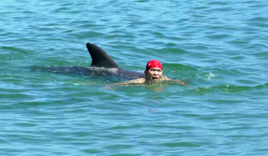 Machida advirtió que los delfines «tienen dientes afilados para atrapar peces viscosos. Pesan entre 100 y 200 kilos y nadan a velocidades de 50 a 60 km/h. Encontrarse con uno de ellos es tan peligroso como toparse con un jabalí o un oso».
