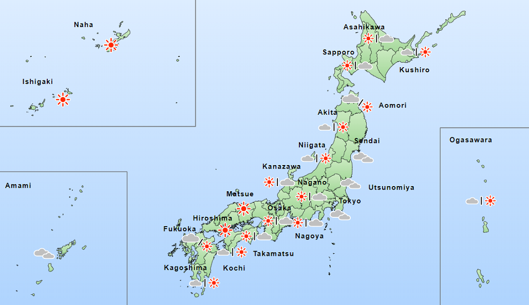 La Agencia Meteorológica de Japón pronostica que a partir del 26 de este mes subirán aún más las temperaturas.