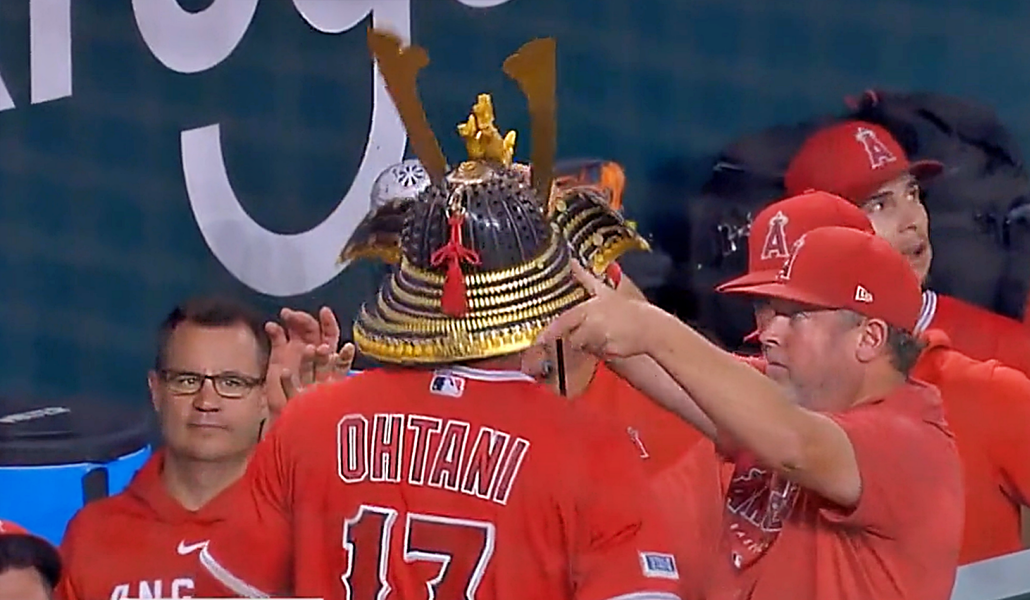 En la tercera entrada Ohtani bateó a tercera base y en el octavo lanzó la pelota hacia el campo corto y que logró convertir en hit por infield con una explosiva carrera hacia primera base.