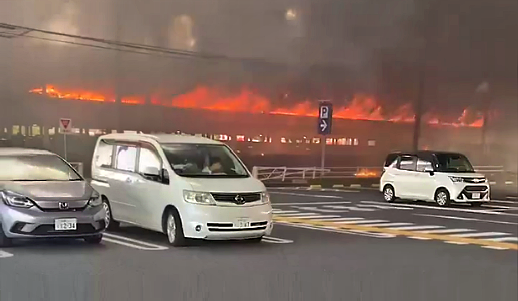 Unos 100 vehículos que se encontraban en una playa de estacionamiento en la ciudad de Atsugi, Kanagawa, resultaron quemados en un incendio que se produjo en el segundo piso de la instalación perteneciente al pachinko «Maruhan Atsugi Kita Store».