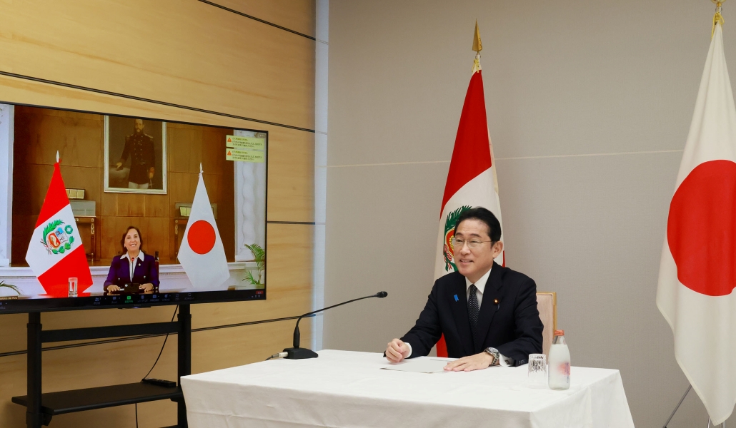 La presidenta del Perú, Dina Boluarte, se reunió virtualmente con el primer ministro japonés, Fumio Kishida, en el día central del 150 Aniversario del Establecimiento de Relaciones Diplomáticas entre ambos países.