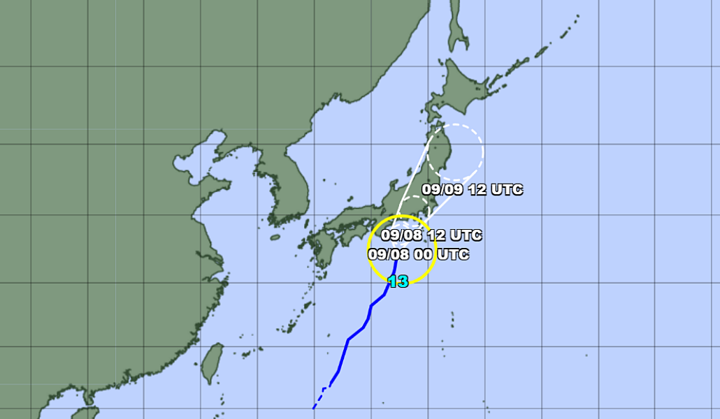 La Agencia Meteorológica de Japón ha emitido una alerta a medida que el tifón Nº13 se acerca a la región este del país, con el riesgo de tocar tierra este viernes 8. Se pronostica que grandes áreas, especialmente en las regiones de Tokai, Kanto y alrededores, experimentarán lluvias intensas y peligrosas hasta el sábado.