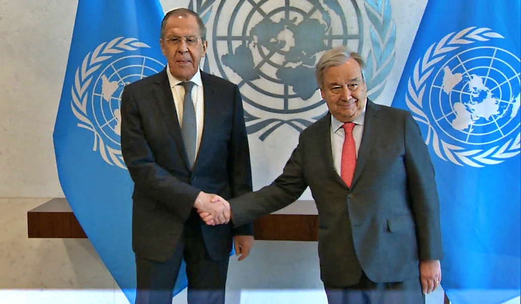 Guterres promete al Ministro de Asuntos Exteriores ruso que «las Naciones Unidas apoyarán los seguros para resaltar la importancia de las exportaciones rusas para la seguridad alimentaria mundial y aumentar el número de participantes en el mercado con el objetivo final de reducir los costos de los seguros para reducir a los exportadores rusos».