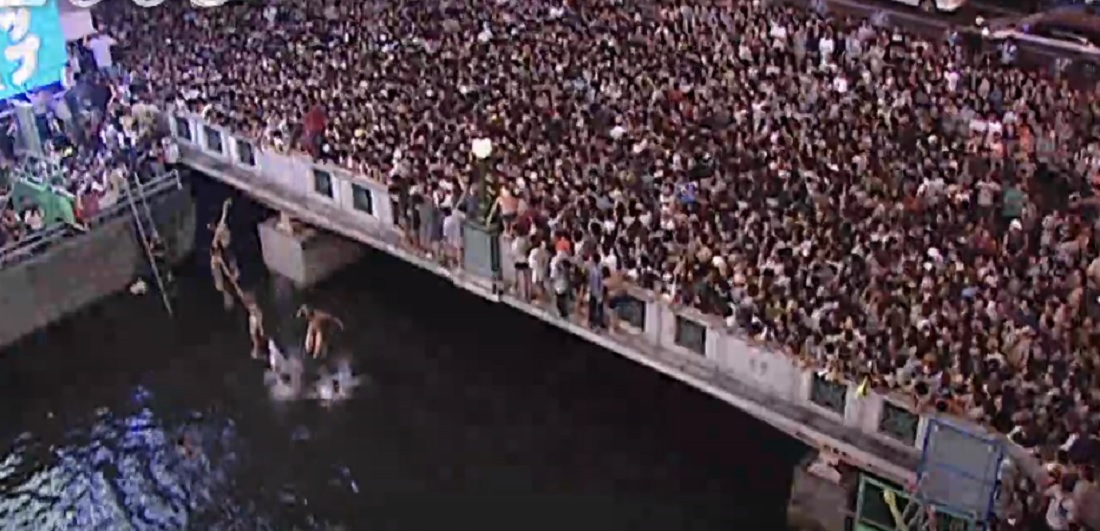 Cuando los Hanshin Tigers ganaron el título de la Liga Central en 2003, alrededor de 5.300 personas saltaron al río Dotonbori, en Osaka. Un hombre murió.
