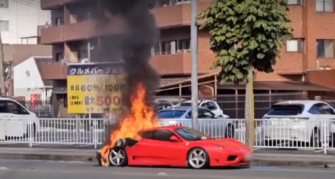 Un empresario residente en la prefectura de Fukuoka pasó el susto de su vida cuando su Ferrari de pronto se incendió.