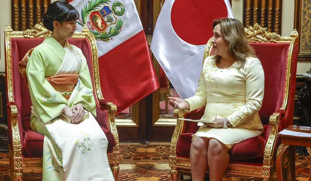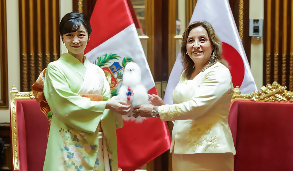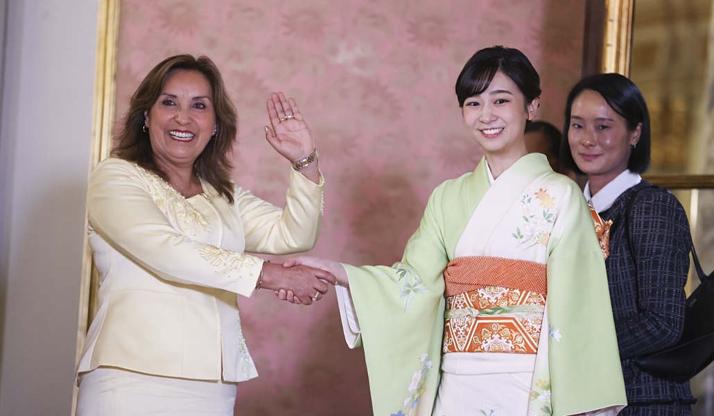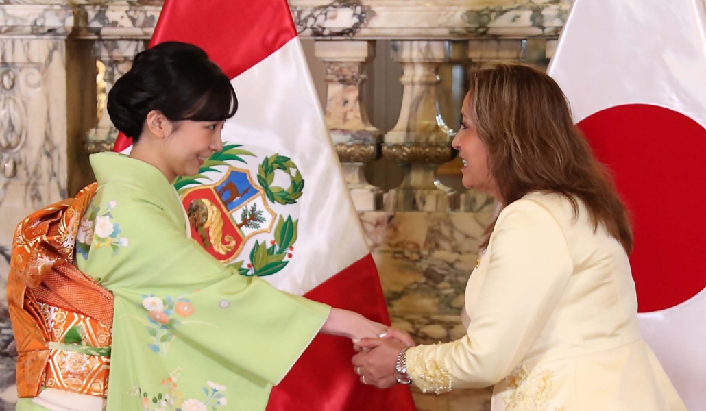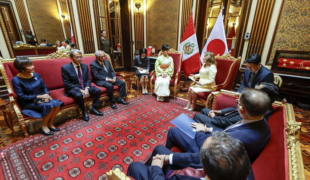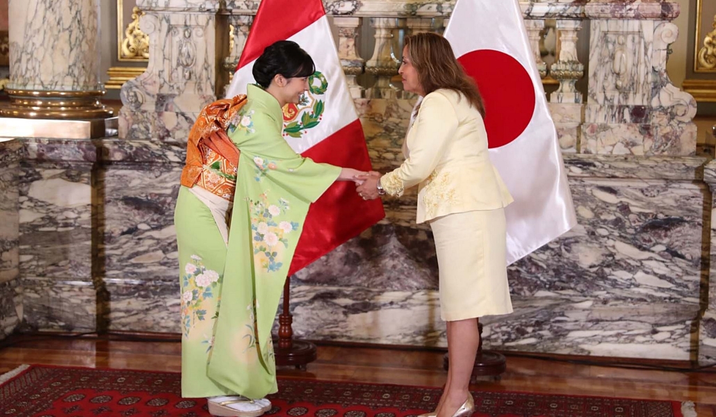 La presidenta, Dina Boluarte, recibió en Palacio de Gobierno a la princesa Kako que visita el Perú en el marco del 150 aniversario del establecimiento de relaciones diplomáticas entre ambos países.