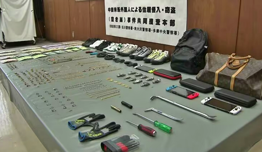 En su lugar de alojamiento, la Policía Metropolitana de Tokio encontró más de 400 artículos, incluyendo bolsos de lujo, zapatillas de marca, joyas y consolas de vídeo juego.