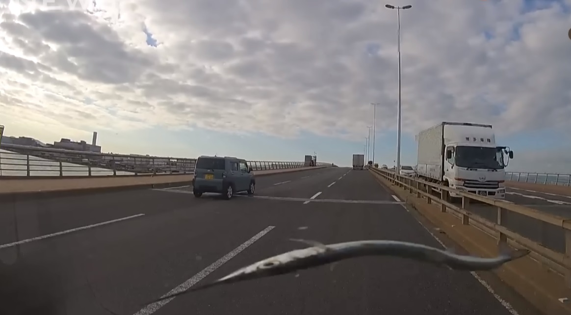 Las imágenes grabadas por la cámara del vehículo muestran que el misterioso objeto era un pez.