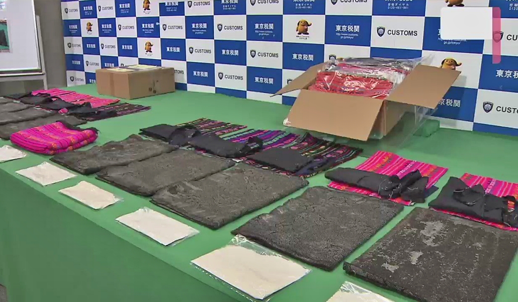 La Aduana de Tokio reveló que las metanfetaminas estaban disueltas en agua y luego impregnadas en el algodón del interior de una bolsa de tela que contenía telares tradicionales.
