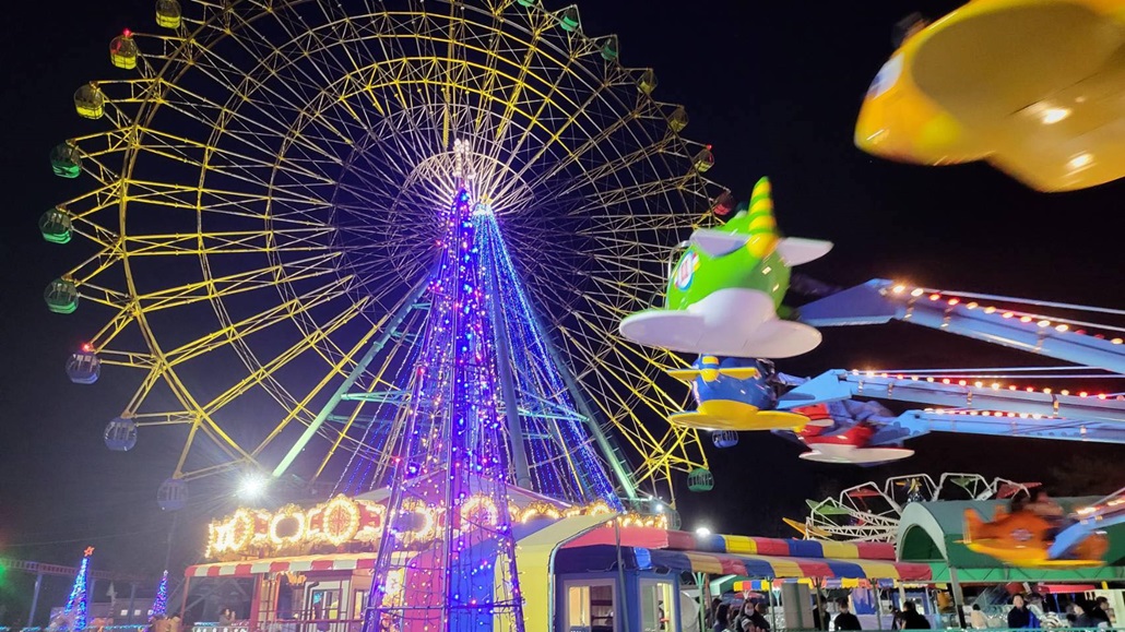 Por supuesto, todos los demás juegos mecánicos también están iluminados con luces de encantadores colores.