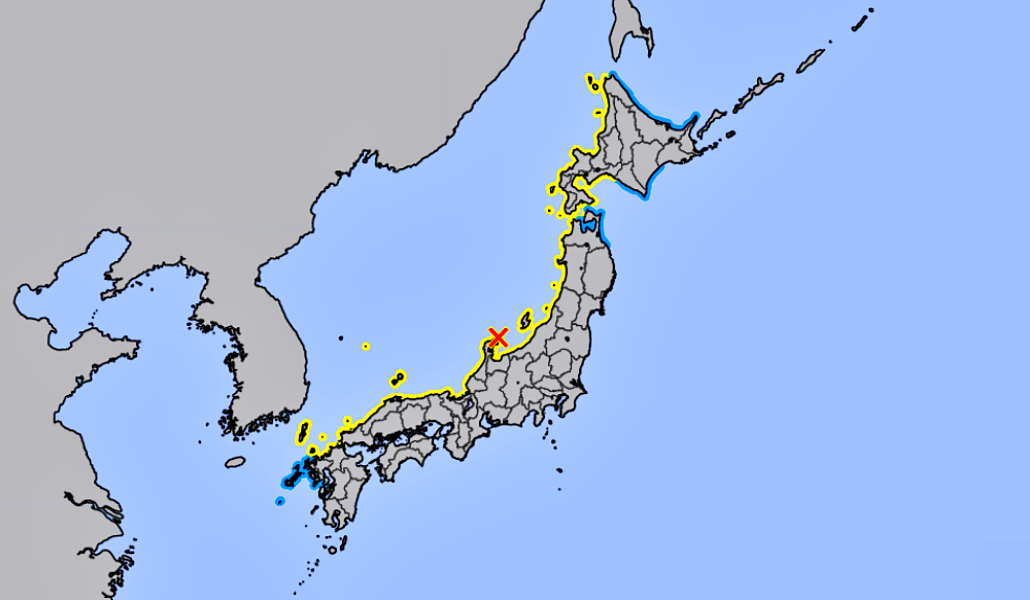 El «aviso de tsunami» se extiende ahora por toda la costa del Mar de Japón donde se pide a la población no acercarse a la playa bajo ningún motivo.