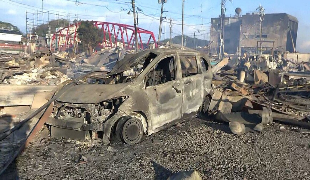 «Asaichi Dori», la legendaria calle del mercado de Wajima, en Ishikawa, de más de 1000 años quedó reducida a cenizas tras el terremoto de ayer en la península de Noto.