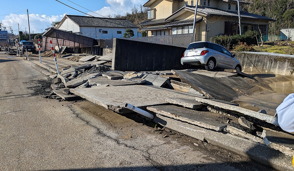 En Uchinada, prefectura de Ishikawa, donde se registró una intensidad sísmica de 5, se observaron casas con las bases deformadas, calles onduladas y postes de electricidad inclinados sostenidos precariamente por maderas. Los residentes que se desplazan entre sus hogares y los refugios, muchas veces deben agacharse para los cables que cuelgan al aire libre.