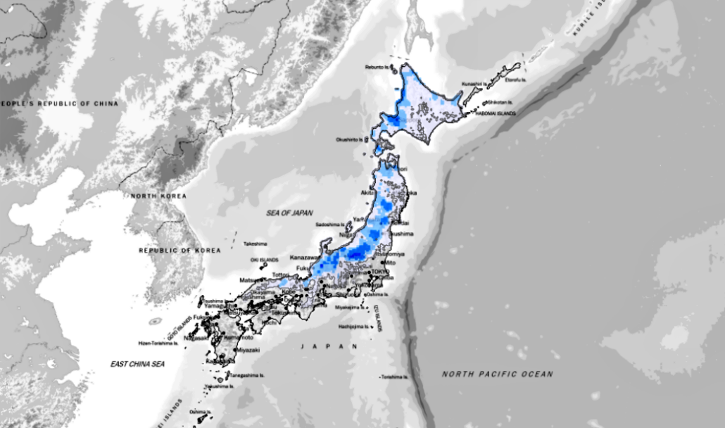 Existe una probabilidad moderada de que se emita una «alerta de gran nevada» para Nagano, Yamanashi y las siete prefecturas de Kanto entre el 20 y el 21.