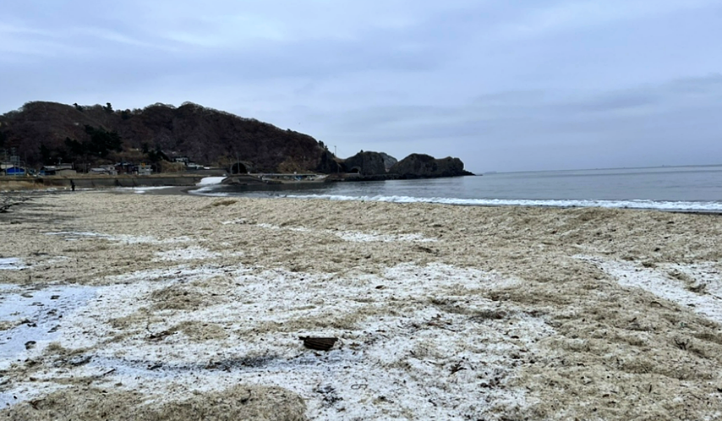 La playa de Hama-cho en Hakodate, Hokkaido, ha quedado cubierta por una gran cantidad de huesos y escamas de sardinas, un fenómeno que parece ser resultado de la descomposición de estos peces en el mar.
