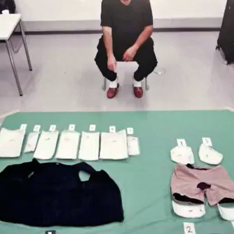 El sospechoso ocultó la metanfetamina dentro de chalecos y su ropa interior con bolsillos internos especialmente diseñados para este fin.