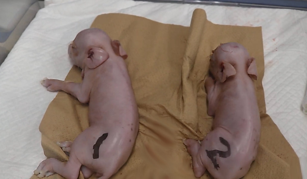 Los cerdos nacieron el domingo 11 de febrero de una madre que recibió óvulos implantados y se espera que sean suministrados a instituciones médicas en Japón para investigaciones preclínicas.
