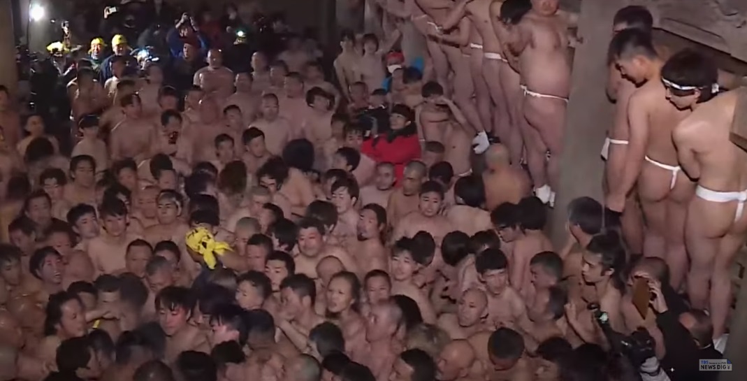En el festival de Somin-sai, que se realiza en la ciudad de Oshu, prefectura de Iwate, un grupo de hombres vestidos con taparrabos compiten para agarrar un saco que contiene talismanes para gozar de buena salud.