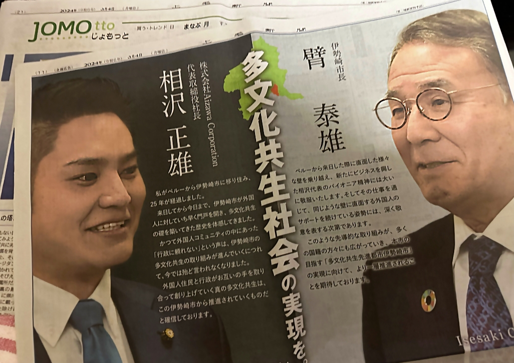 Por su parte, Aizawa, dijo en la misma publicación que en los 25 años que vive en Isesaki, desde que llegó de Perú, la ciudad «ha abierto sus puertas rápidamente a los extranjeros y ha construido los cimientos de la convivencia multicultural».