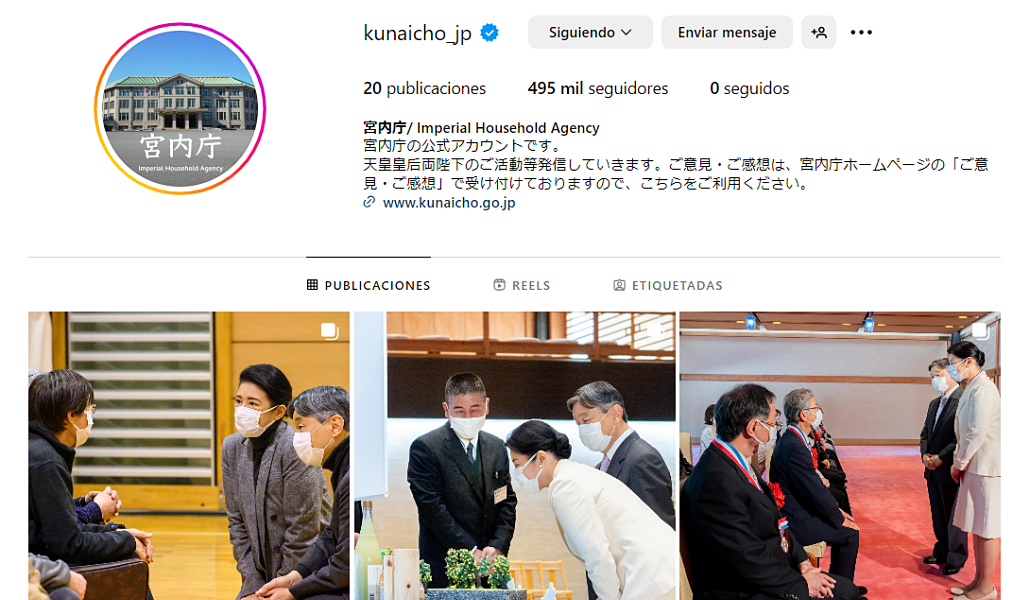 La Agencia de la Casa Imperial publicó una foto del Emperador y la Emperatriz y miles de personas comenzaron a seguir la cuenta ⇐.
