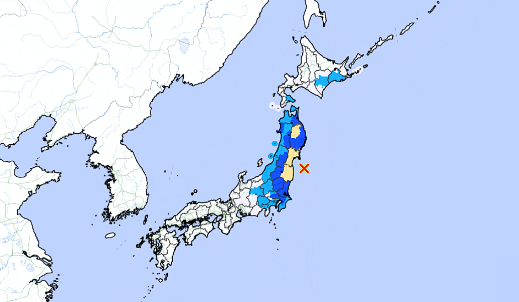 El movimiento ocurrió a las 12:16 horas con epicentro a 40 km de profundidad en el Pacífico. El sismo llegó a 4 grados en la escala japonesa de 7 en las prefecturas de Fukushima, Iwate y Miyagi.