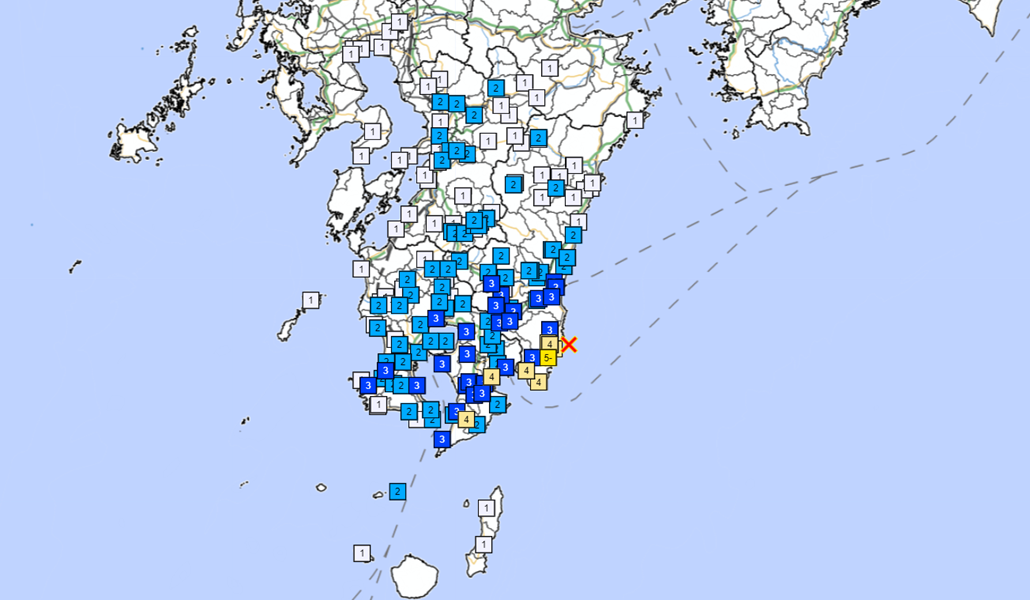 El sismo tuvo 5 grados de intensidad en la ciudad de Nichinan, prefectura de Miyazaki, y nivel 4 en Osaki y Kinko en la prefectura de Kagoshima, además de la ciudad de Kushima en Miyazaki.