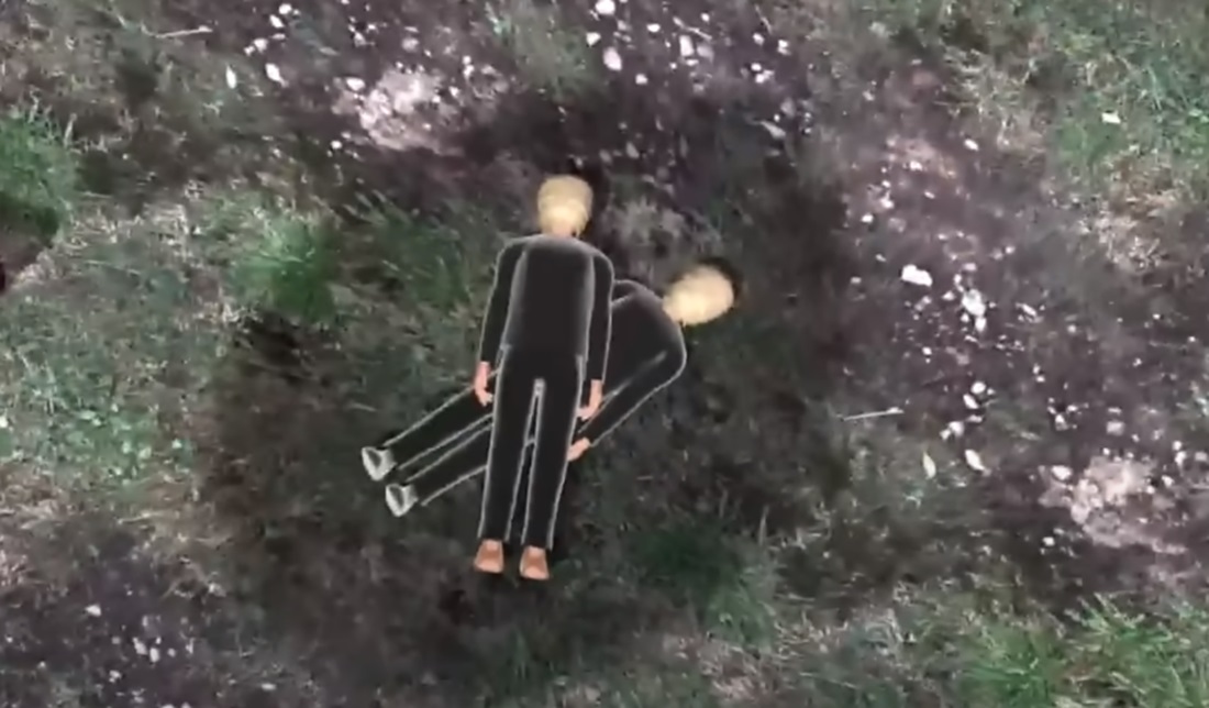 Las víctimas fueron colocadas una encima de la otra boca arriba. Cerca del lugar se halló un contenedor que posiblemente contenía gasolina.
