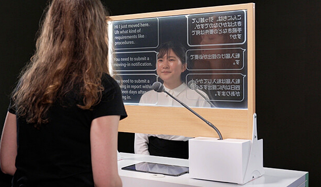 El sistema combina el software de traducción de la empresa con una pantalla transparente de 31.5 pulgadas. El dispositivo puede realizar traducciones en tiempo real de 12 idiomas al japonés, incluidos inglés, español, portugués, chino e indonesio.