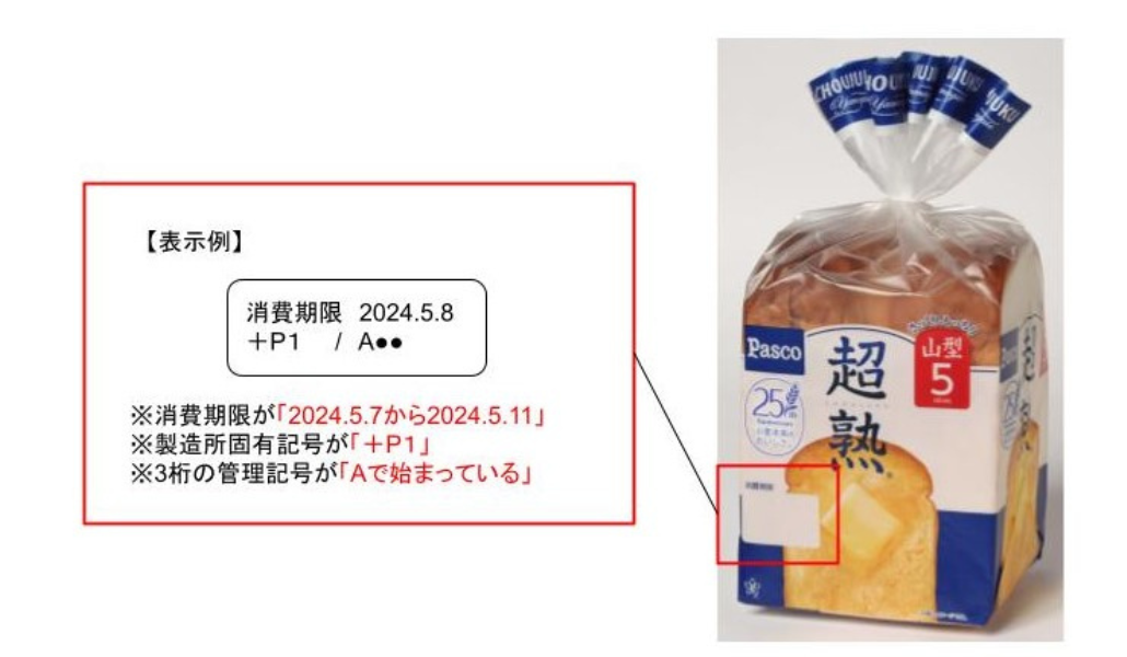 Pasco Shikishima ha anunciado la retirada voluntaria de aproximadamente 104,000 unidades de sus productos 「超熟 Chojuku」 de 5 y 6 rebanadas, producidos en la misma línea.