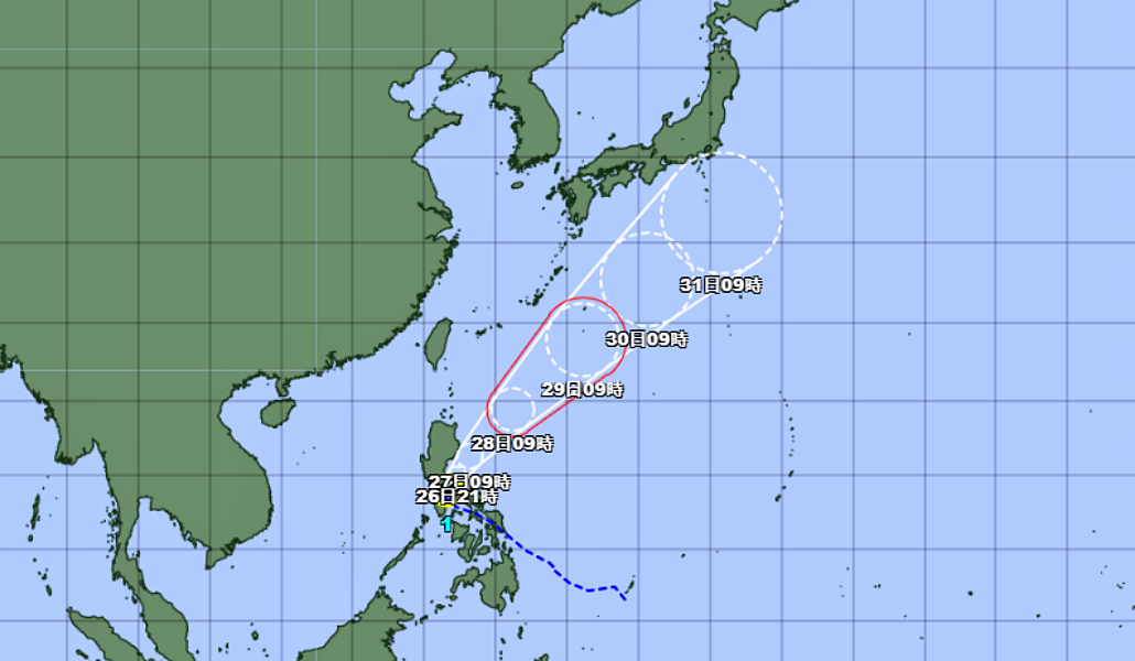 Para este lunes, el tifón No. 1 se moverá lentamente hacia el norte y se intensificará. El martes estará acompañado de tormentas y existe el riesgo de que el miércoles se desplace hacia aguas cercanas a Okinawa, en los alrededores de la región de la isla Daito, con tormentas de nivel de advertencia y olas altas.