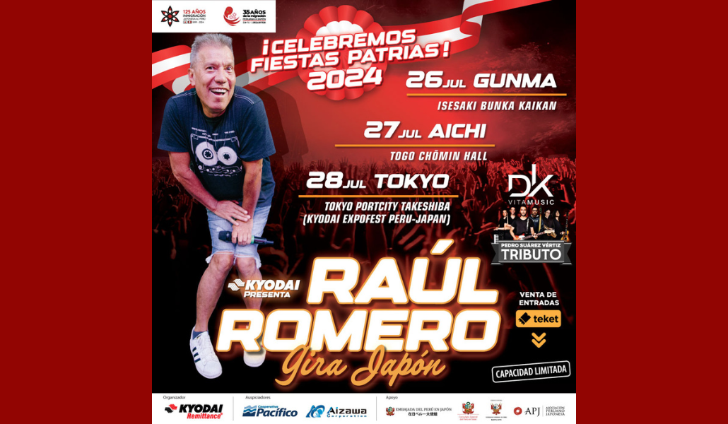 Celebra las Fiestas Patrias Peruanas con KYODAI en un divertido show musical con el inigualable Raúl Romero. No pierda esta oportunidad única de disfrutar de la auténtica música latina peruana en Japón.