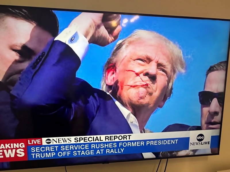 Las imágenes de televisión mostraron lo que parecía ser sangre en la oreja derecha y la cara de Trump mientras era cubierto por agentes del Servicio Secreto y se escuchaban gritos de la multitud. Luego fue llevado rápidamente a su caravana.