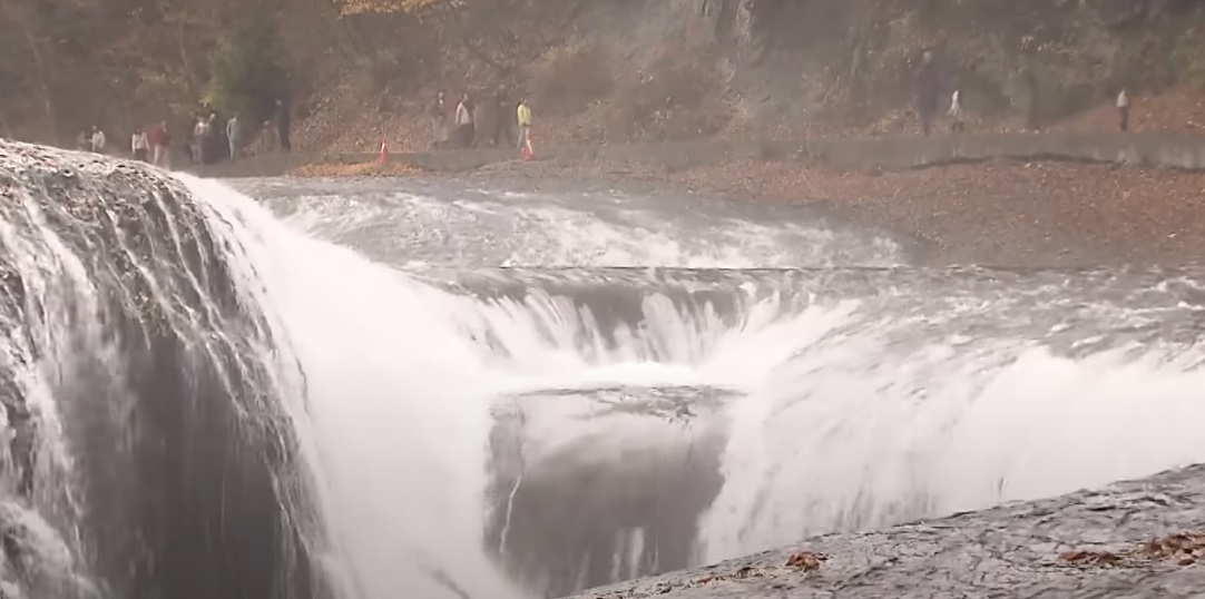22 turistas quedaron varados en un paseo marítimo cuando un río se desbordó en las cataratas Fukiware, un popular destino turístico en la ciudad de Numata, prefectura de Gunma, el lunes.