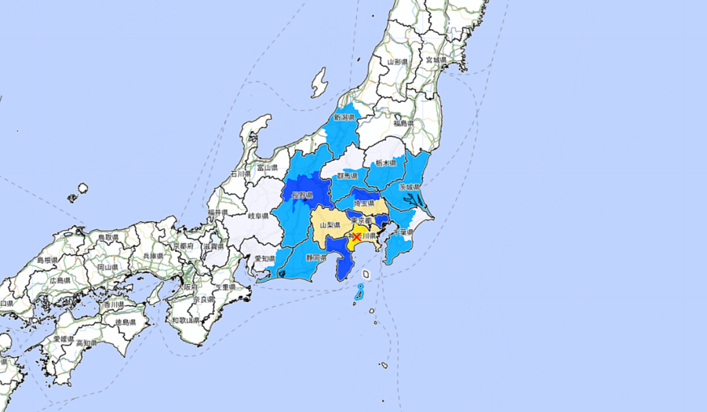 El epicentro estuvo en tierra firme, en Kanagawa, a una profundidad de 10 km con una intensidad de 5 menos en la escala japonesa de 7, con una magnitud de 5,3 grados.