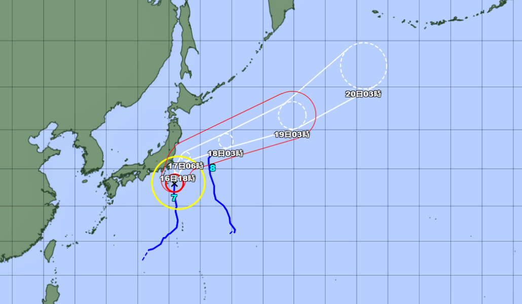 El Tifón Nº7 siguió hoy desplazándose en dirección norte sobre el Océano Pacífico y al este de las islas de Izu. La noche de ayer, se intensificó hasta alcanzar el nivel de «muy fuerte», mientras calculó que se acercará a la región de Kanto la tarde de hoy viernes.
