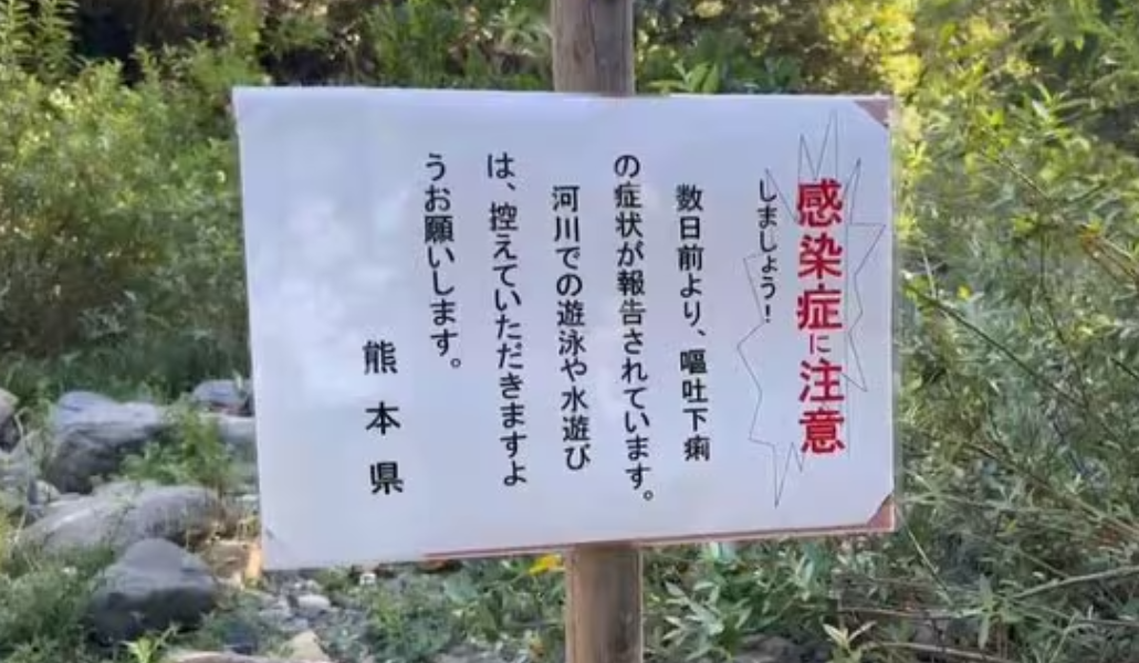 El 13 de agosto, un grupo de estudiantes de secundaria y otras personas en el río cerca de las Cascadas Todoroki, en Kumamoto, comenzaron a presentar síntomas de malestar, incluyendo vómitos y diarrea. El 16 de agosto, siete de estos estudiantes buscaron tratamiento médico.