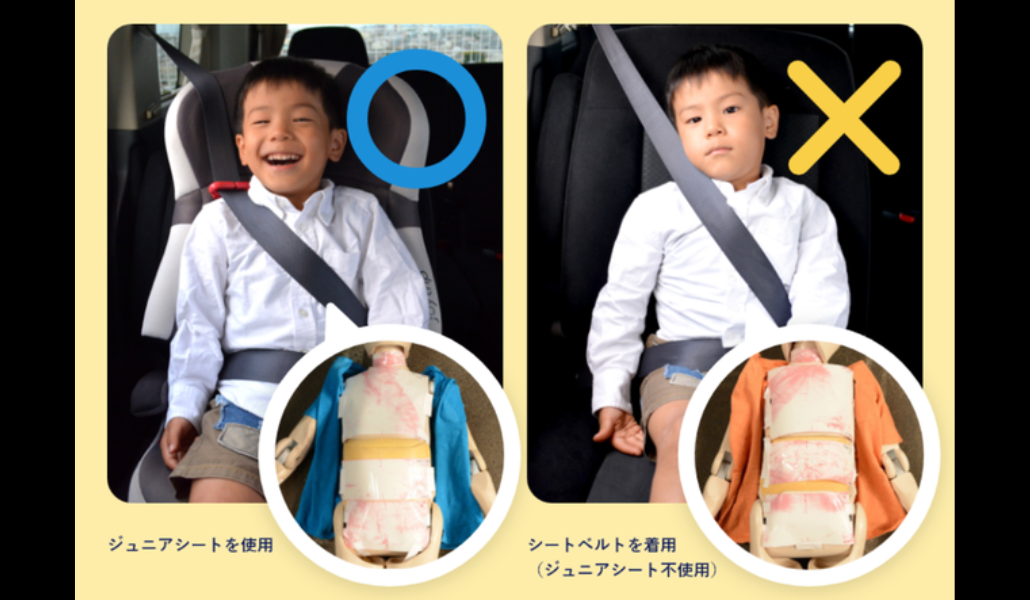 La Federación Japonesa de Automóviles (JAF) recomienda que los niños menores de 140 cm utilicen sillas infantiles o elevadores. Los cinturones para adultos no brindan la protección adecuada a su anatomía, aumentando el riesgo de lesiones graves en caso de impacto.