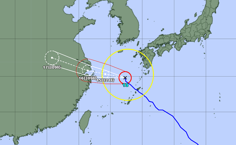 A las 3 de la mañana de hoy domingo 15 de septiembre, el tifón se encontraba a unos 160 kilómetros al noroeste de la ciudad de Amami, desplazándose a una velocidad de 25 km/h en dirección noroeste. Aunque el centro de la tormenta se aleja gradualmente, su influencia se sigue notando en la región, con lluvias intermitentes y ráfagas de viento.
