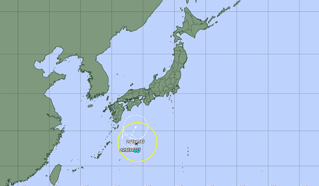 La Agencia Meteorológica de Japón informó que el tifón número 16, conocido como «Cimarrón», se formó al mediodía de hoy, 25 de septiembre, sobre el Pacífico al sur de Japón. El fenómeno avanza lentamente hacia el oeste-noroeste, manteniendo una presión central de 1002 hPa y vientos máximos sostenidos de 18 metros por segundo, con ráfagas que alcanzan hasta los 25 metros por segundo.