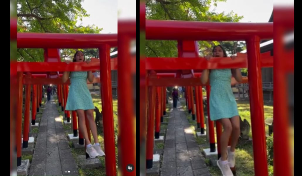 El video que inicialmente fue compartido en Instagram, se difundió rápidamente en la plataforma X, desatando una ola de críticas. Antes de este video, la exgimnasta había subido otro en el que hacía un equilibrio parada de manos en las escaleras que llevan a un «torii» en el Parque Nakajima de Sapporo. Ante la indignación, la deportista eliminó las imágenes y pidió disculpas.