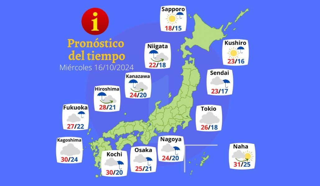 El miércoles, un frente frío traerá lluvias a gran parte de Japón. En Tohoku y Hokuriku se prevén precipitaciones fuertes y posibles tormentas eléctricas, mientras que en Kanto se espera un día nublado con lluvias esporádicas.