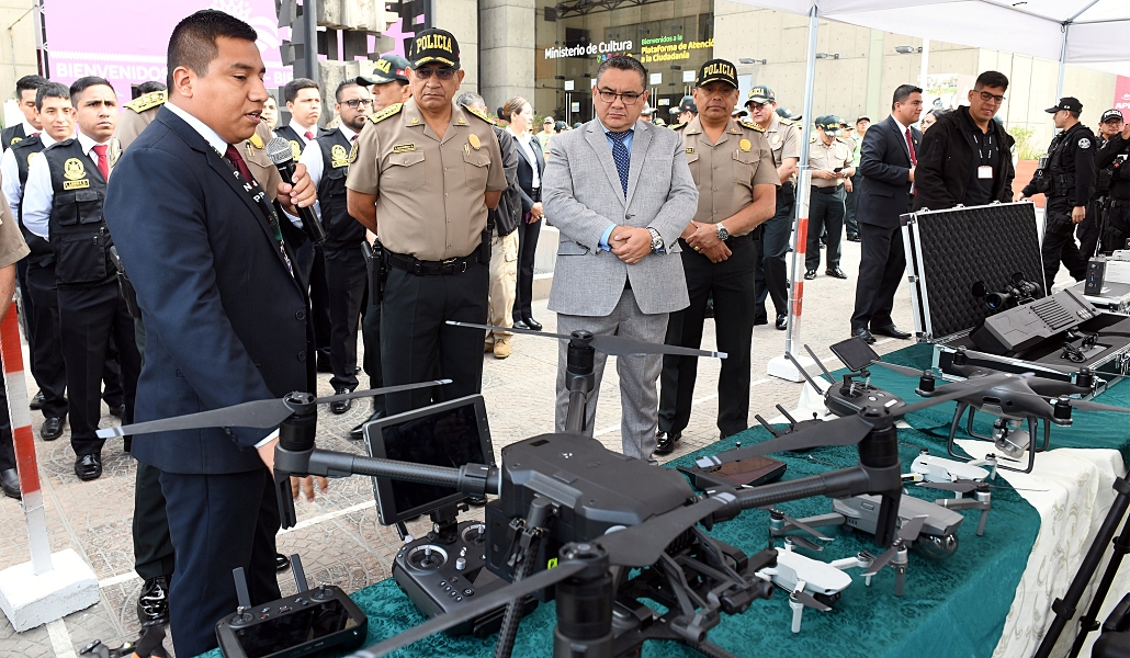 Durante la presentación del equipamiento tecnológico, se realizaron demostraciones de la operatividad de drones, sistemas anti-drones, robot desactivador de explosivos, cámaras de vigilancia domo y GoPro, radios de comunicación y visores nocturnos monoculares, por parte de la Región Policial Lima y las direcciones de Inteligencia, Aviación, Tránsito, y Seguridad del Estado de la PNP.
