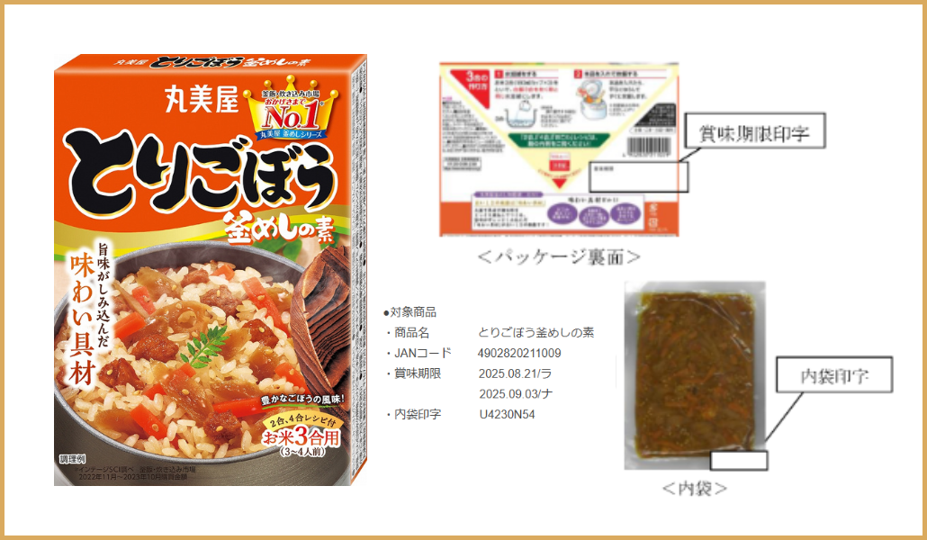 La fabricante Marumiya Shokuhin anunció hoy la retirada voluntaria de aproximadamente 15.000 unidades de su producto “Tori Gobou Kamameshi no Moto” (とりごぼう釜めしの素), un condimento especial para arroz, después de que se detectara lo que se cree restos de un insecto, posiblemente una cucaracha.