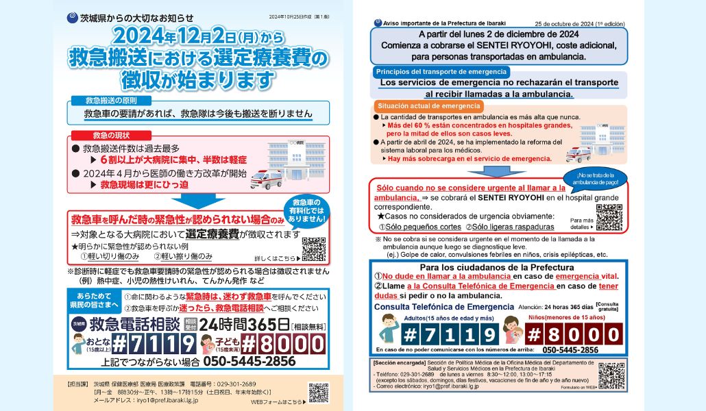 A partir del 2 de diciembre, la prefectura de Ibaraki ha comenzado a cobrar tarifas por el uso de ambulancias cuando no se trata de una situación de urgencia crítica. Esta medida se basa en una iniciativa similar adoptada en junio de 2024 por la ciudad de Matsusaka, en la prefectura de Mie.