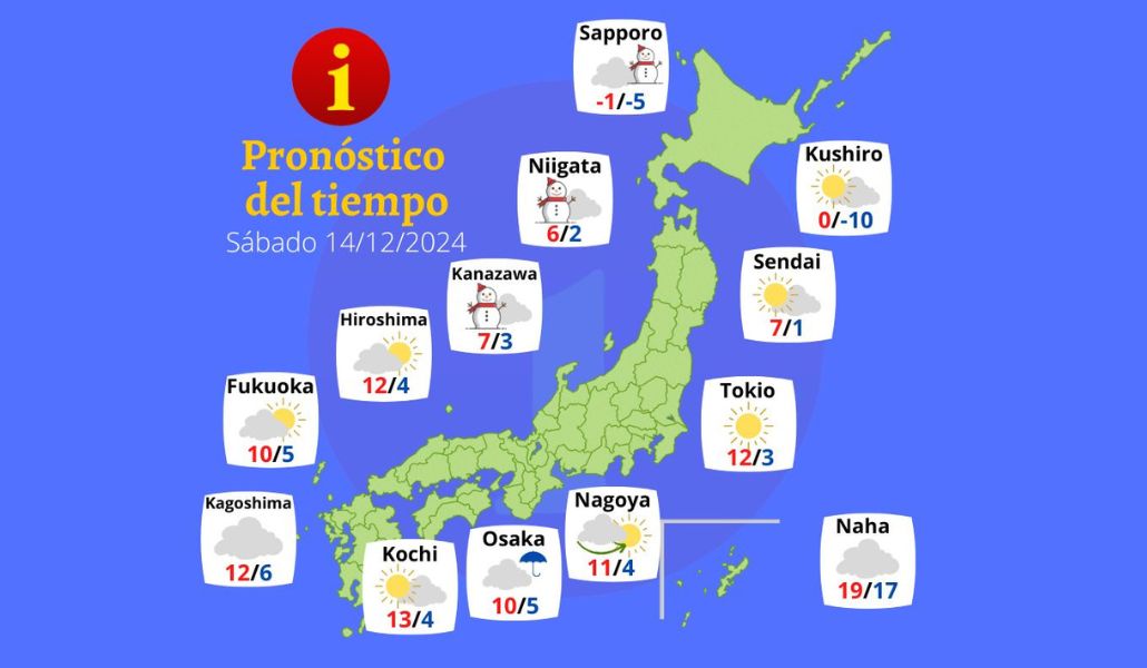 Se espera un clima invernal marcado en Japón. Desde Hokuriku hasta San’in, habrá lluvias intensas, granizo y nevadas, con posibilidad de tormentas y ráfagas de viento, especialmente por la mañana.