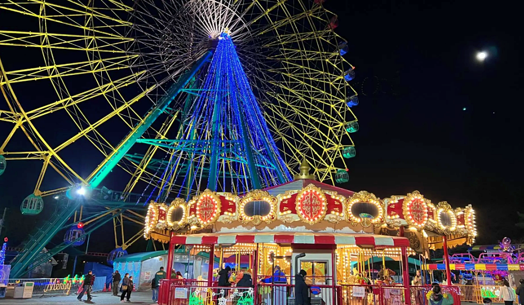 Atracciones nocturnas: 5 atracciones operativas hasta las 21:00 (noria, Sky Fighter, Magical Glider, Super Shooting Ride y carrusel).